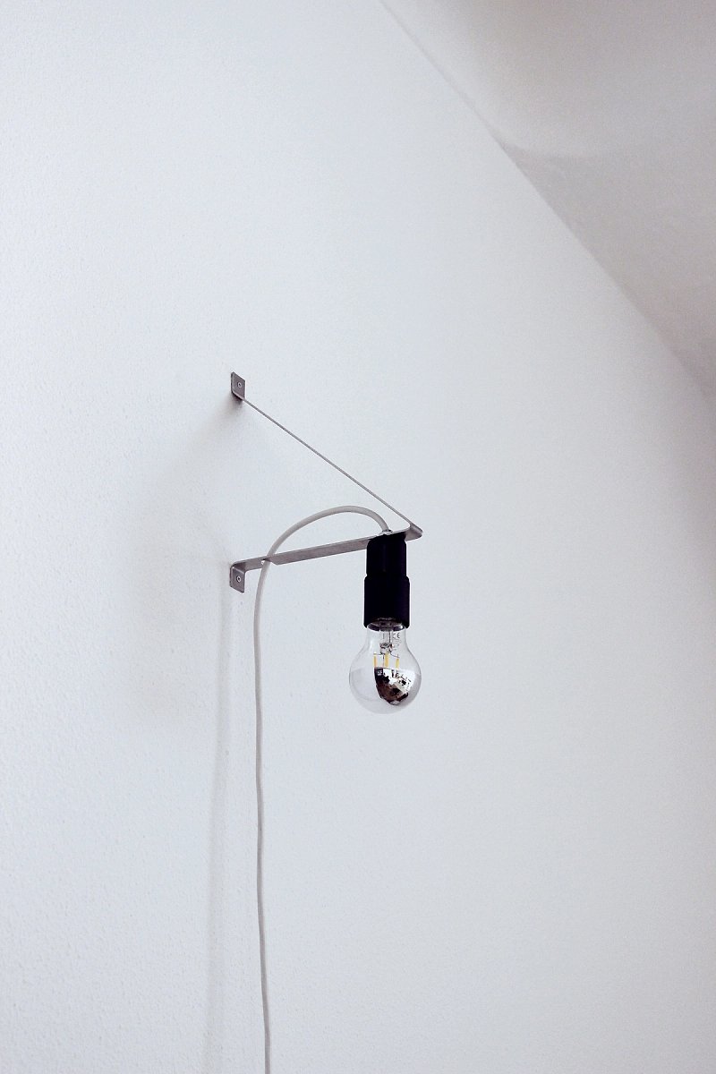 The Bracket light is part of our Daily Camping object series and fabricated in Porto. The stainless bracket functions as a simple and versatile support to hold a light bulb in different positions and guide the cable. The switch is placed either along the cable or directly at the light fitting.