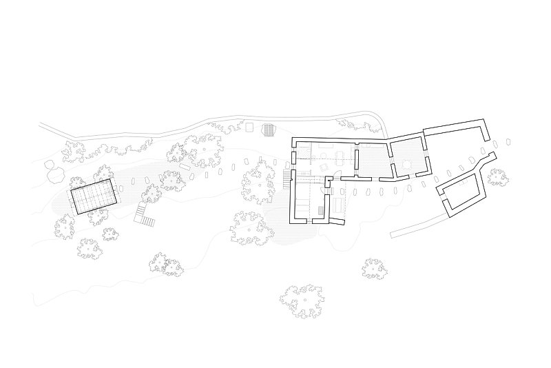 This project is about the reconstruction of a ruin built in granite stone, its relationship to the landscape, and a glass house that not only houses plants but also acts as a spatial counterpart to the otherwise solid stone building. Three rooms of the former farm house will be used as enclosed and warm spaces while the remaining four rooms are turned into outdoor rooms that confuse the boundary between landscape and interior and become spaces for improvisation.