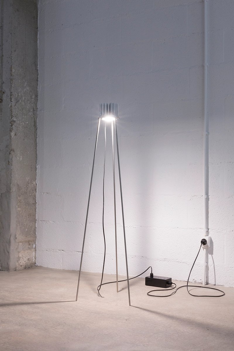 Tripod Light is a powerful light, reduced to its bare elements. It is part of our Daily Camping object series and assembled in a limited series of 12 pieces in our workshop in Porto. Legs, disc and light components are dismountable.